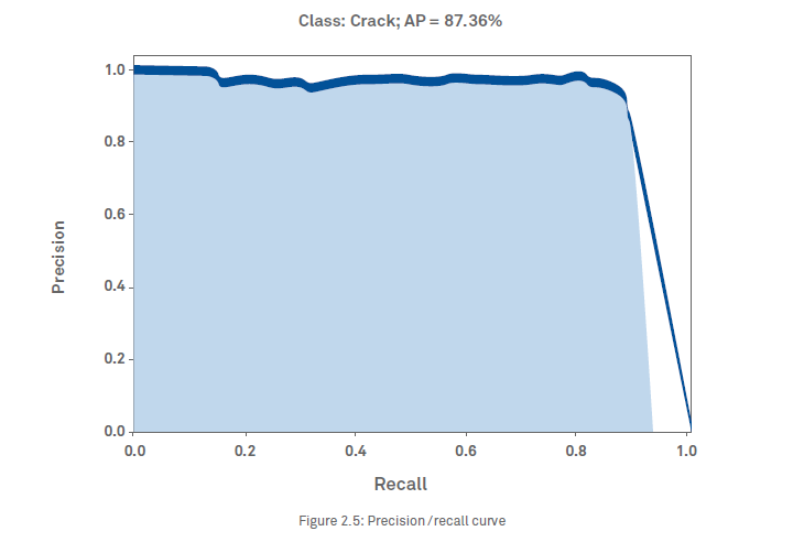 To train our model, we randomly partitioned the SDNET20182 (refer figure 2.2 below) dataset into 70% for training and 30% for evaluation. To compensate for the limited size of available dataset, a Faster R-CNN3 Resnet-101 model (pre-trained on a coco dataset4 - a large-scale object detection, segmentation, and captioning dataset) has been re-trained on all layers with our training dataset. Model hyper-parameters were fine-tuned to improve the mean average precision (mAP), achieving 89.11% after 15,000 iterations.