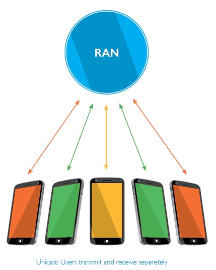 The uniqueness of eMBMS is that it can transmit data in both unicast (dedicated channel between one sender and receiver) and multicast (one sender to multiple receivers) mode. This gives operators the option to realize rapid scalability and huge network efficiency gains (when transmitting through multicast mode) while delivering high quality voice and data services (when transmitting through the unicast mode).