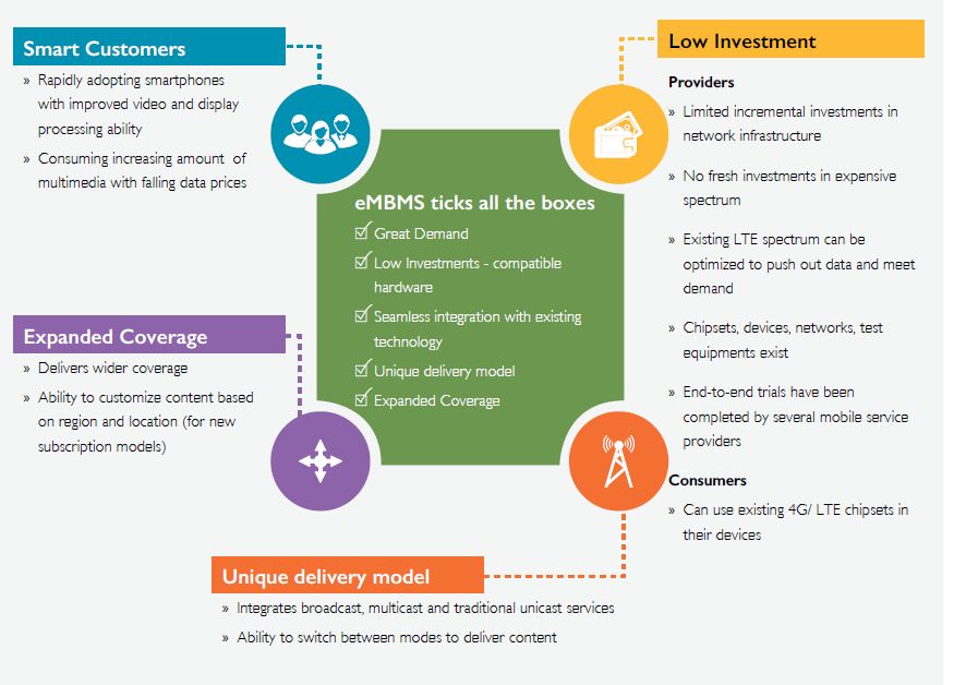 Mobile multimedia broadcast has been around for over a decade but has failed to gain traction. Many past efforts were based on proprietary standards which were built as isolated technologies with huge cost implications. Today, mobile multimedia broadcast is back with the tantalizing arrival of eMBMS that has several factors for it to be successful.