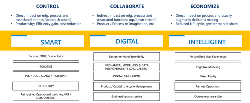 Embracing a smart, digital, intelligent (SDI) framework supports digital transformation by aligning the entire digital thread – from source to design to build to make to consume – to achieve business and environmental sustainability benefits. The Smart capabilities help organizations control operations and maintenance functions, while Digital capabilities enable collaboration throughout the organization and value chain. The Intelligent capabilities, meanwhile, help companies drive results through optimization.