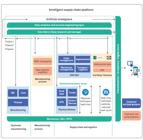 The world is rife with disruptions, and what it truly needs is a very strong intelligent supply chain – a supply chain that can automatically look at upstream manufacturing, product intake, logistics, transportation and delivery, and feed intelligence to produce the right product at the right time and in the right place. But to do so, we not only need fragmented systems, but a data fabric that extends right across the entire manufacturing landscape to the end-to-end supply chain. Therefore, we need an integrated system to make a true intelligent supply chain or make one that is effective.