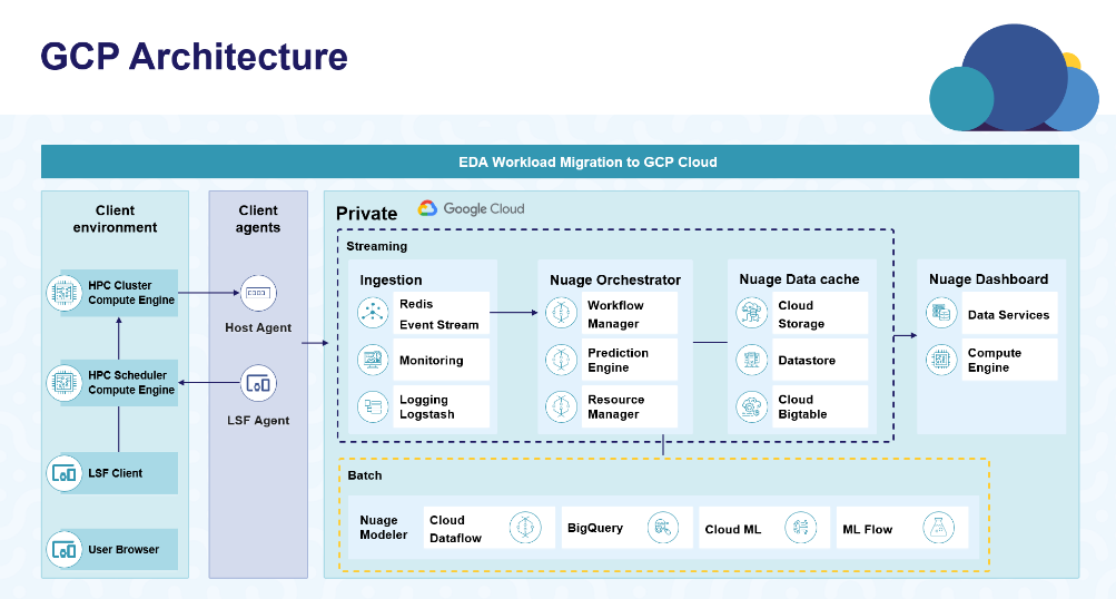 Wipro Nuage is an automated orchestrator that optimizes HPC costs for EDA workloads and uses an AI/ML prediction engine to right size compute cores and memory in public, hybrid and private cloud scenarios. In Google Cloud environments, it auto-scales infrastructure resources to dynamically meet the needs of current and forecasted workloads.