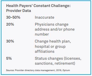 Accurate provider data is critical for operational performance by healthcare providers to realize consumer satisfaction. Health payers are now facing stiff penalties for erroneous or out-of-date provider information – particularly when such information is published to plan members. A plan may be exposed to additional liability if a member claims erroneous data leads to incorrect plan or provider selection, or otherwise contributes to poor service or care.
