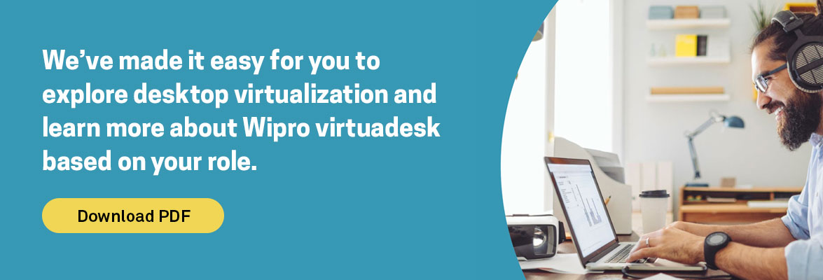 Our VDI expertise extends beyond COVID-19. We launched Wipro’s virtuadesk in 2013 and are pioneering desktop as a service with a bank in the Middle East.