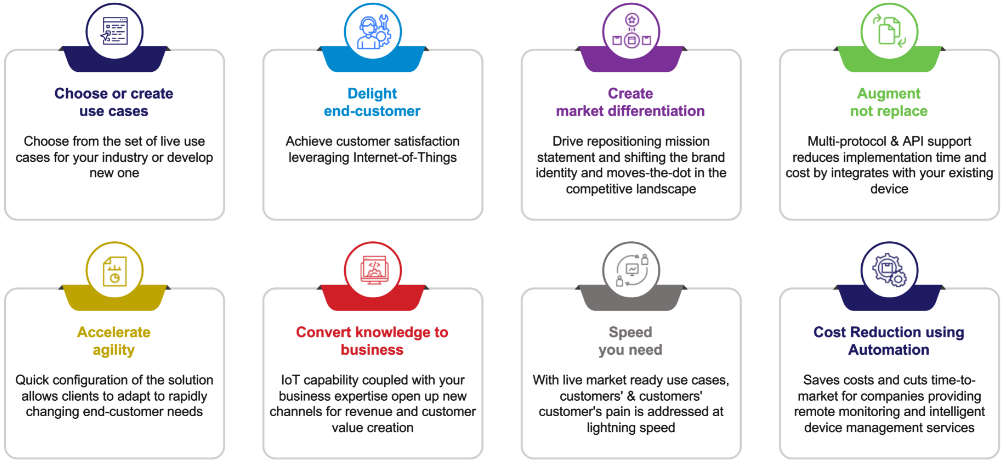 Wipro Smart i-Connect™ is a multi-domain IoT solution which is ready to deploy solution that allows clients to rapidly create new revenue streams and right shift end-customer experience while reducing cost of operations. The disruptive and differentiated benefits it creates for clients transforms their businesses and gives them the much needed market edge to be the leaders