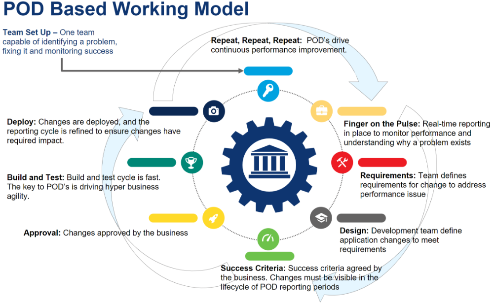 Pod-based engineering, a software development strategy centered on small cross-functional teams, can be a compelling method to overcome both organizational and technical hurdles in the insurance business, and rapidly accelerate the deployment cycle. In fact, it’s fair to say that the most effective way to truly ensure swift deployment in the insurance business is through pods.