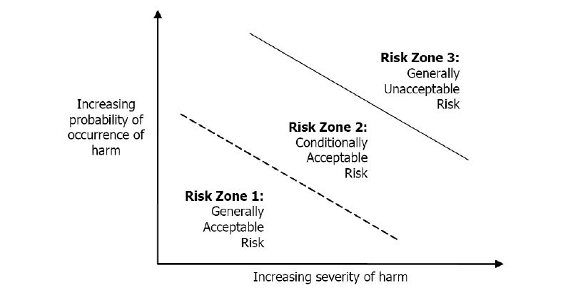 Hazards that fall into Safety Risk Zone 3 (R=3) are generally unacceptable. If hazards in Safety Risk Zone 3 cannot be further mitigated to the point of falling into an acceptable Risk Zone (R=1 or 2), a formal risk/ benefit analysis shall be performed and documented.