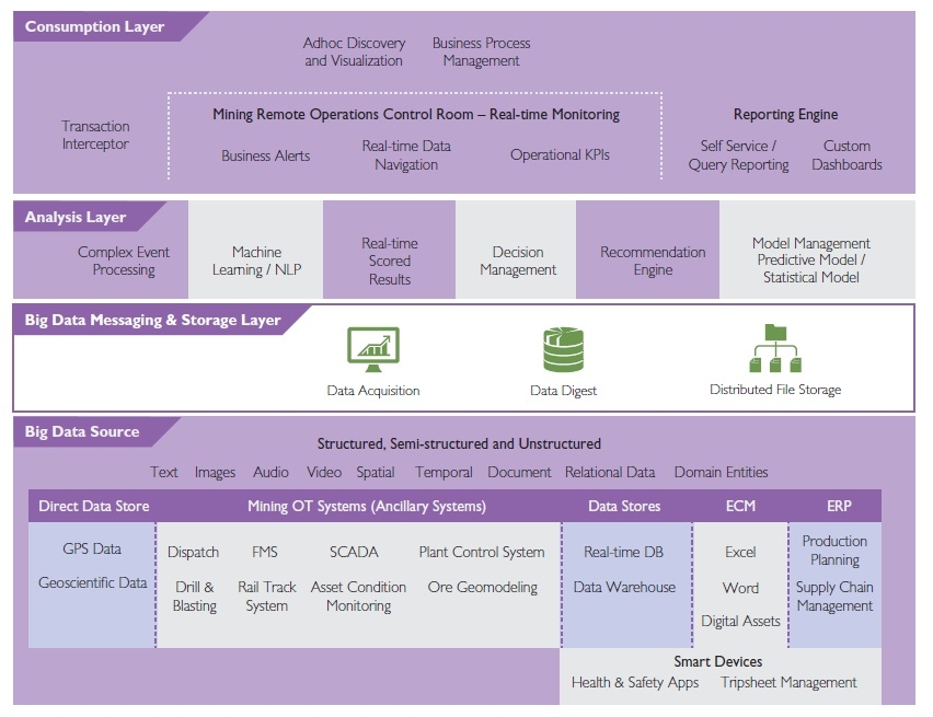Helping achieve this goal are sensors embedded across mining operations. These sensors are generating vast amounts of geoscientific, asset condition and operational data in real time. Improvements in Wi-Fi and 3G/ 4G-LTE speeds are enabling real-time collection of data from the extraction point right up to the final transportation of ore to plants. This data can be analyzed using massively parallel processing and faster distribution of intelligence to stakeholders.