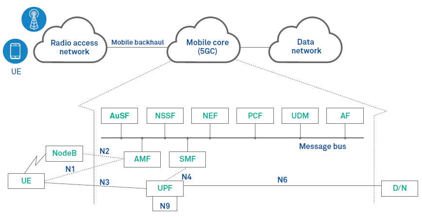 The 5G core architecture is defined as an SBA with clear separation of control and user plane functions. 5G core functions expose their services on a message bus that can be consumed by other functions. Following figure depicts 5G Core network functions as defined in 3GPP specifications.