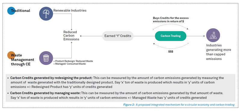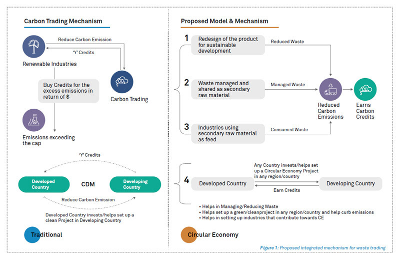 The integration of a waste trading mechanism with the carbon trading mechanism will further help reduce the carbon footprint and introduce circularity in the ways of working. Industries must transition toward a circular economy to achieve a sustainable and more profitable economic model. Technology will have a major role to play in shifting the linear economy to a circular one. Technological advancements and a shift towards a circular and a more sustainable world would generate more employment opportunities as the industries would undergo a complete redesign & revamp. The proposed integrated mechanism is scalable to various industries aiming to help them achieve circularity, make them more sustainable, and thereby reduce their carbon footprint to Net Zero.