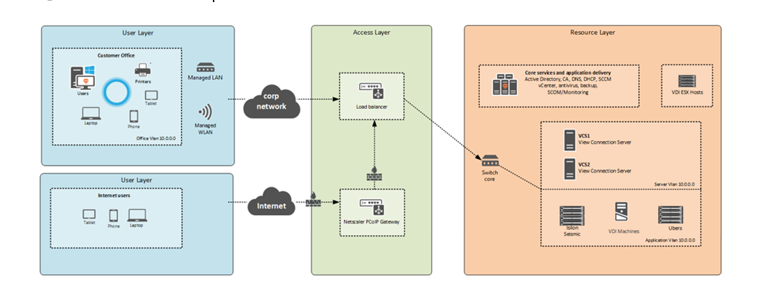 The client’s geoscience community was required to perform complex tasks, such as seismic data analysis, well correlation, reservoir modelling, and reservoir simulations from their high-end computing workstations. Due to discrete setups, the teams faced challenges in collaborating with peers owing to location, network and device constraints. In order to enable users to work from across locations, the client needed its physical workstations to be virtualized, thus allowing flexi seating, access to high-end mobile devices and easy collaboration practices between its team members. Also making the on-boarding process of new users/guests, quick and easy was of essence.