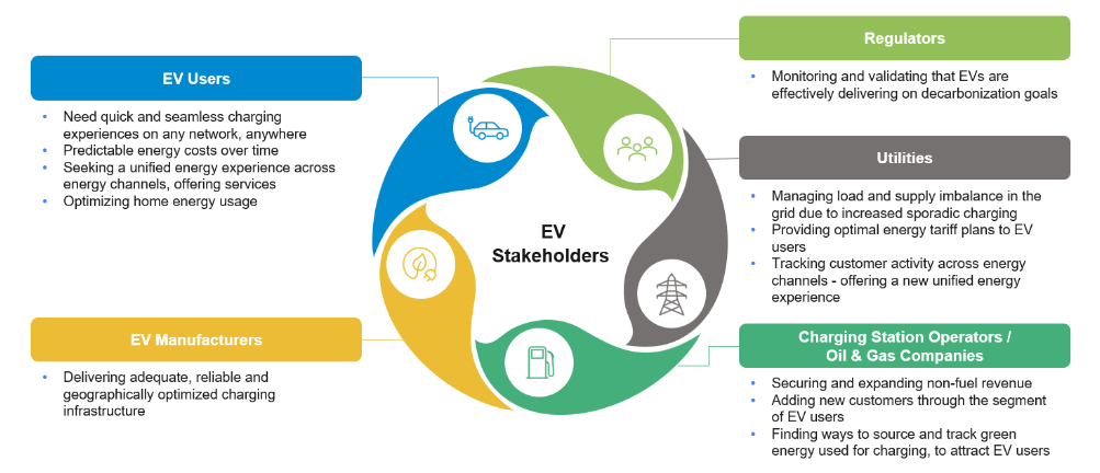 The move from fossil fuels to electric vehicles poses a great disruption to the business model of oil and gas companies. Key stakeholders involved in the adoption of EV infrastructure include EV users, infrastructure manufacturers, regulators, utilities and charging station operators.