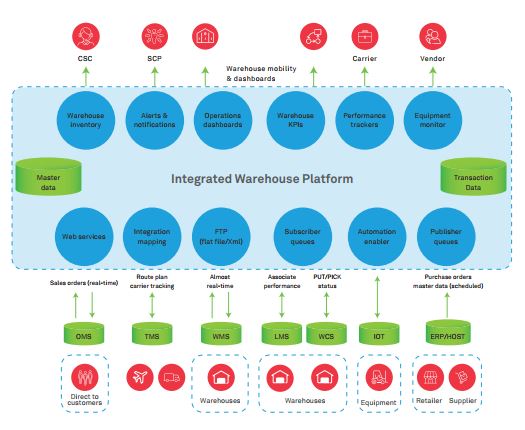 An ideal Integrated Warehouse Platform (IWP) solution provides visibility into inventory, orders, and customer information across the network of distribution centers in real time. It helps enterprises eliminate waste, carry out informed Figure 1 Integrated Warehouse Platform decision-making, and streamline operations by effective processing of data. Additionally, it supports information access from various mobile devices, supports analytics engines, and handles data with other host systems such as Labor Management Systems, Order Management Systems, Internet of Things (IoT) systems, etc. (Refer figure 1)