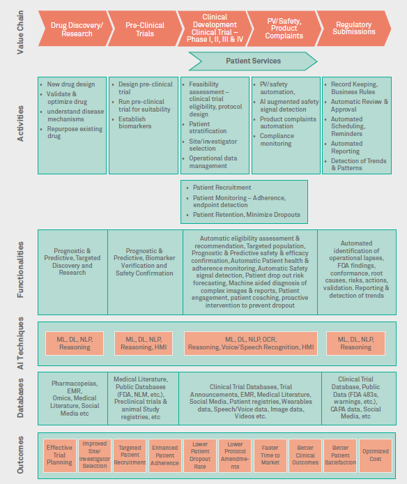AI-led advances can enable the clinical development industry to transform their business by reducing complexity, gaining quick insights, saving time and cost of development, and increasing consumer engagement with better outcomes.
