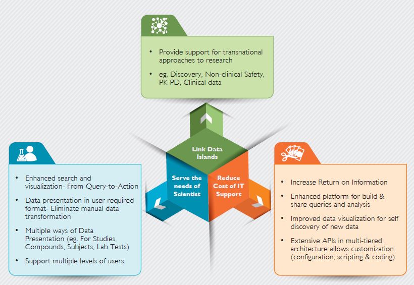 Integrated Big Data analytics platform will link data islands, improve scientific support and regulatory decisions and enhance product safety. This will offer competitive advantage to pharma companies with faster time to market, and reduced IT support cost with innovations.