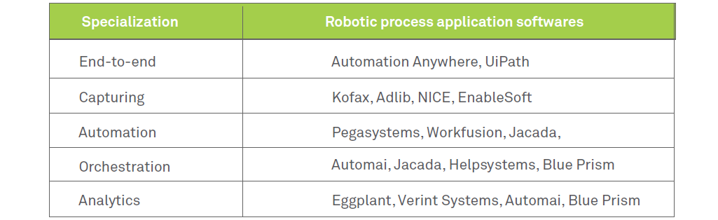 Figure 1: RPA vendors classification based on their competitive advantage of their work functions