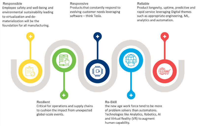 We know the pandemic has re-structured the way organizations manage their business. Today’s businesses must operate by clustering their approach around 5Rs: Responsible, Responsive, Reliable, Resilient, and Re-skilled (see Figure 1).