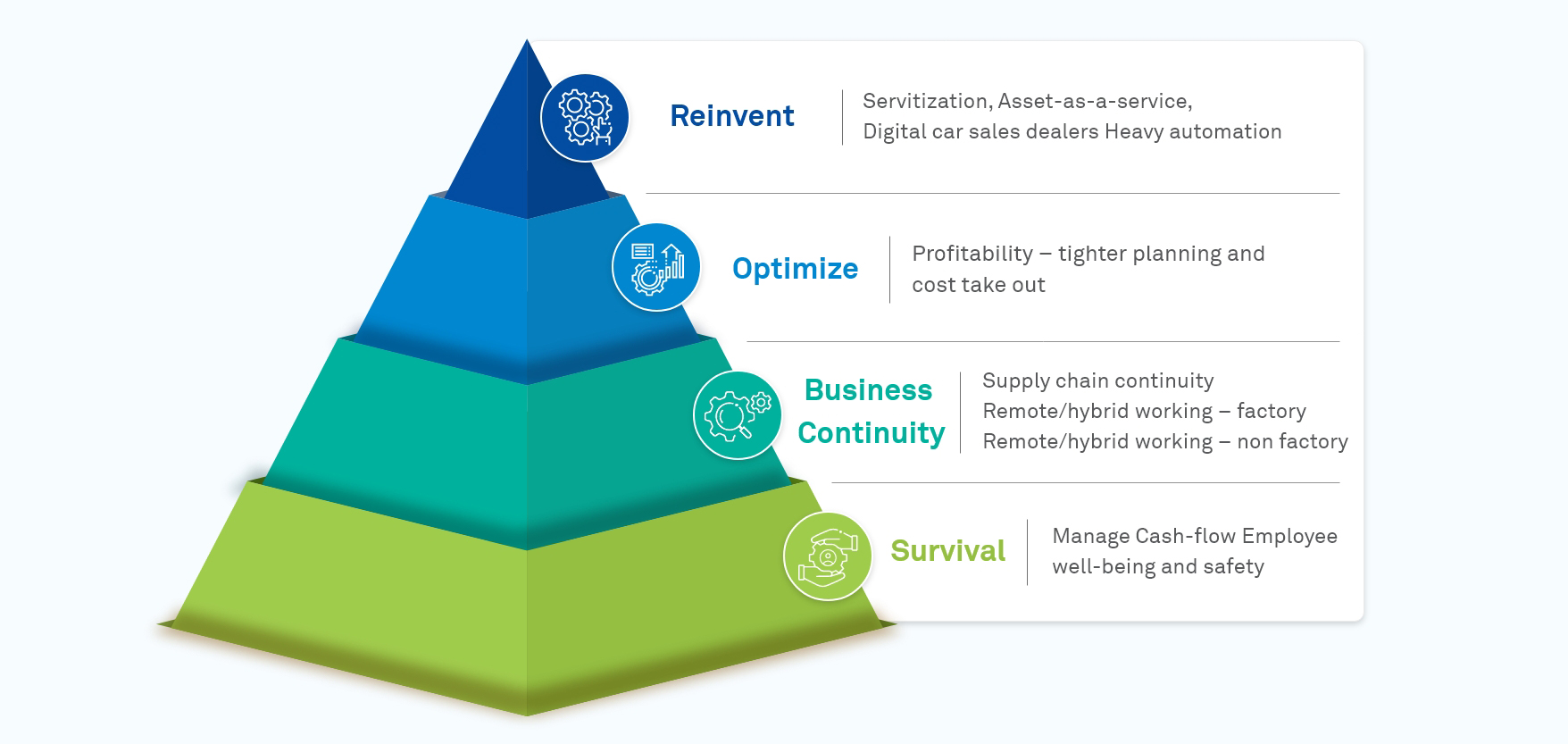 While the journey begins with ensuring survival and continuity, companies that will emerge stronger from the crisis would use it as an opportunity to optimize and Re-invent.