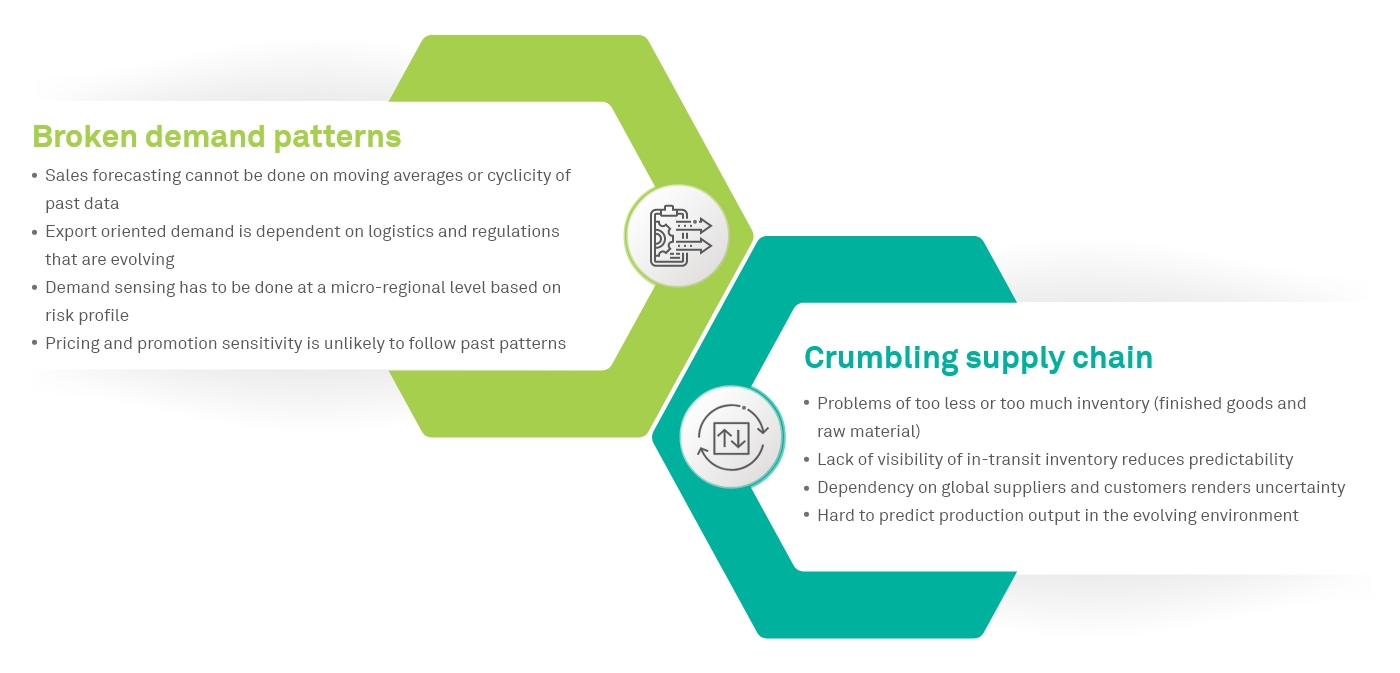 The demand patterns are breaking and the supply chain is crumbling, leading to a breakdown of the demand-supply equilibrium. Companies will have to reboot their planning process and supply chain, and technology will be a key enabler in that process.