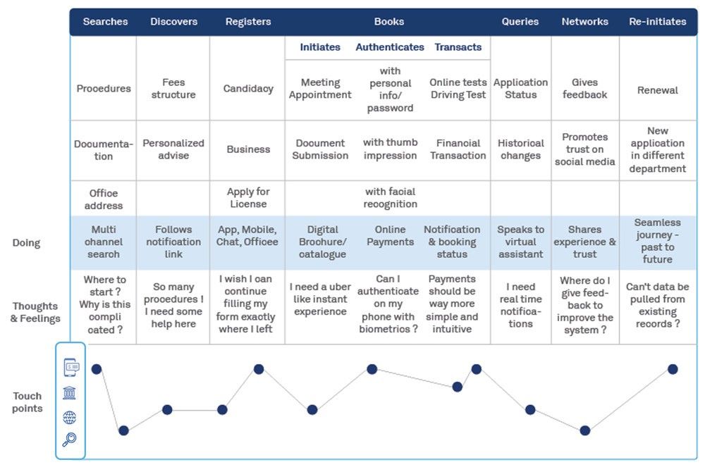 A typical citizen journey is depicted in the figure below, bringing out how the expectations of the citizen from all government interactions are getting increasingly influenced by their experiences as a consumer.