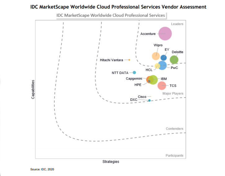 Source: IDC MarketScape: Worldwide Cloud Professional Services 2020 Vendor Assessment (Doc # US45439120, April 2020).