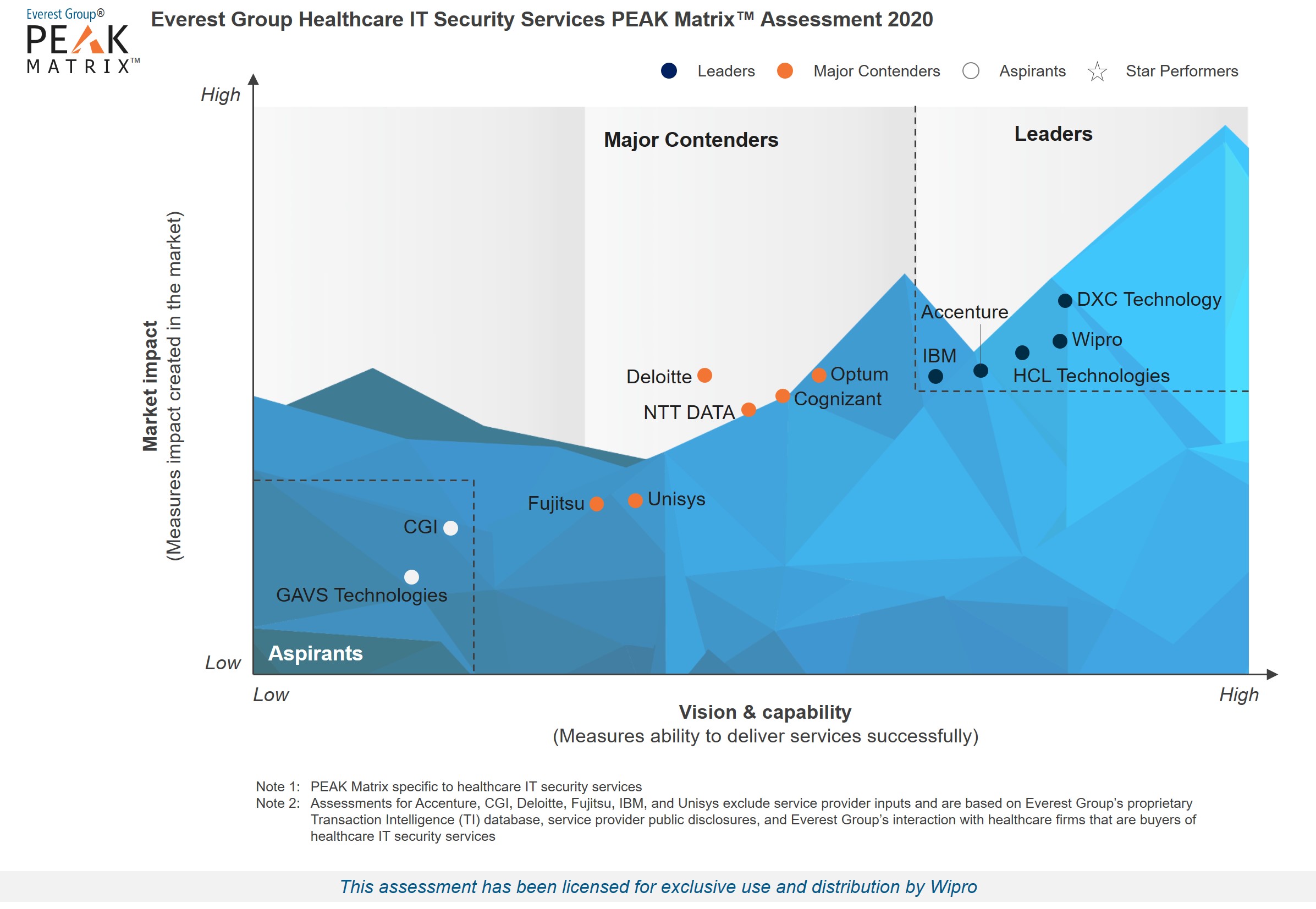 Everest Group released PEAK Matrix for Healthcare IT Security Services 2020. The report analyzes the changing dynamics of the Healthcare IT security landscape and accesses 13 service providers based on their absolute market success and delivery capability. The report highlights strong IP-play and multi-channel partnership ecosystem that strengthens Wipro’s delivery capabilities as a security partner for its clients. It also shows Wipro’s robust healthcare-centric cybersecurity frameworks that lends credibility to engage in transformative deals for clients.
