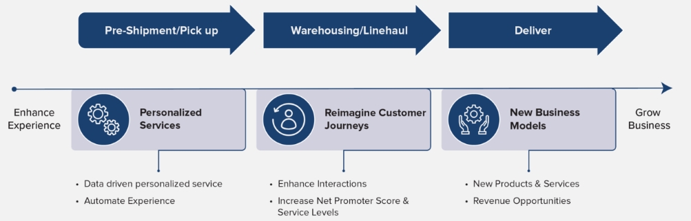 Reimagine customer journeys: Digital technologies and evolving customer expectations have changed interactions in channels and physical touch points during last-mile delivery, requiring the redefinition of the customer experience. Developing customer-focused initiatives will proactively identify customer needs and eliminate pain points, creating a meaningful experience. An enriched customer experience improves CX-specific KPIs like net promoter score and service level.