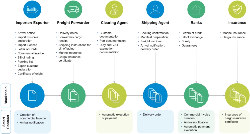 Currently, sanity checks for cross-border shipments are a manual process, and the process may take days or even weeks to complete—preventing banks from releasing timely payment and compensation to the relevant parties. With a blockchain-enabled smart contract, a successful manifest check could trigger the automatic release of the shipment, as well as a notification to all concerned parties and the release of payments, making the process both more efficient and more immune to fraud and human error.