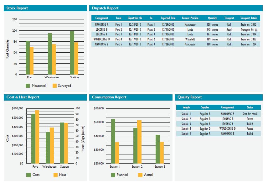 The information available will be in near real time particularly on the transit status of fuel consignments to the management. The status of fuel contracts on account of utilization, due for renewal and the SLA adherence in all contracts will be readily viewable. The status of fuel inventory available in each of the plant sites will be available in near real time including details of fuel stock in yards and the latest update on quantity of fuel consumed.