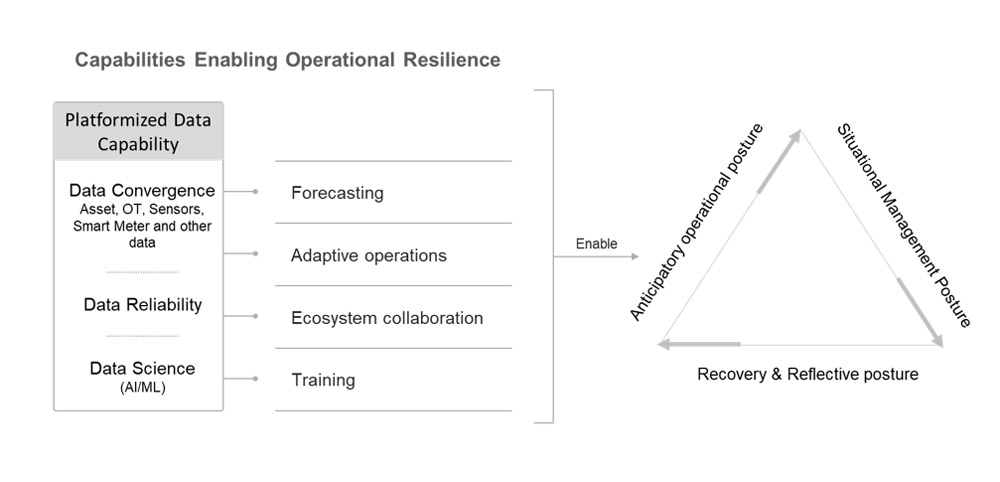 In building a robust set of capabilities to enable service and operational resilience, it is vital that utilities start with a platformised view of their data strategy that will then enable the systematic and orchestrated evolution and sustenance of advanced capabilities essential to adaptive and resilient operations.